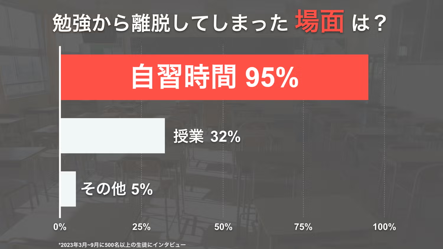 500名以上の生徒にアンケートを取ったところ、つまずきが多く発生する場面は圧倒的に「自習時間」であることが分かっています。一方で、学習塾は授業以外にも教室の管理、講師の育成、生徒や保護者との面談、事務や経理業務を担うこともあって、自習時間の学習サポートまで手が回らないことがあります。