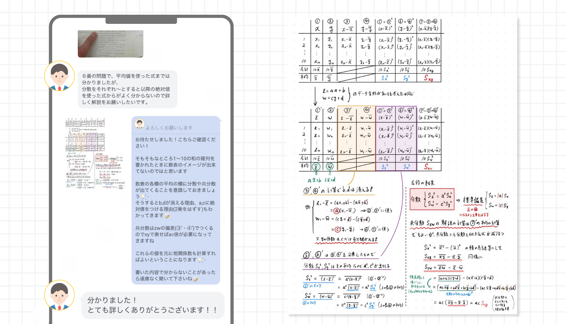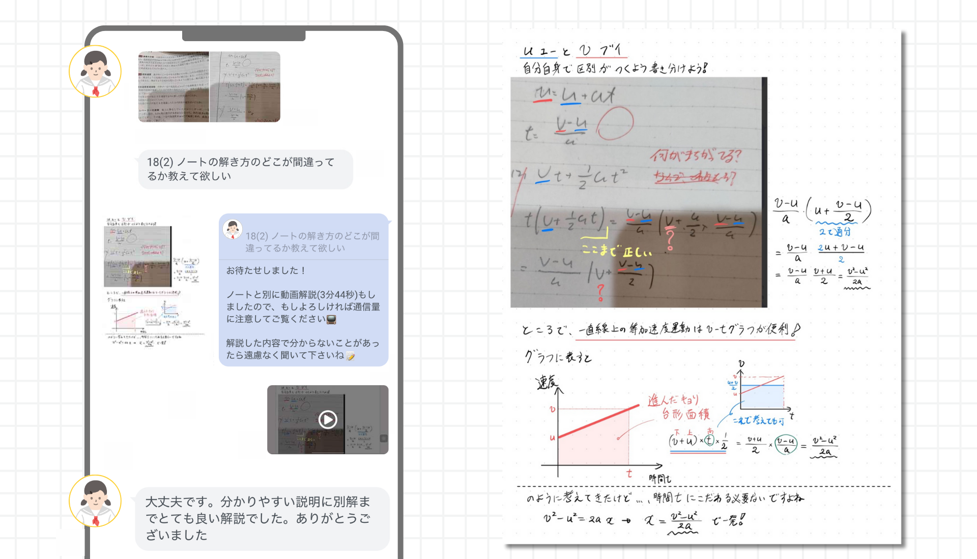 講師は生徒の式の展開を丁寧に読み解き、どの部分で論理が崩れているのかを見抜いたうえで、ノート図解 + 動画で徹底的にサポートをしています。