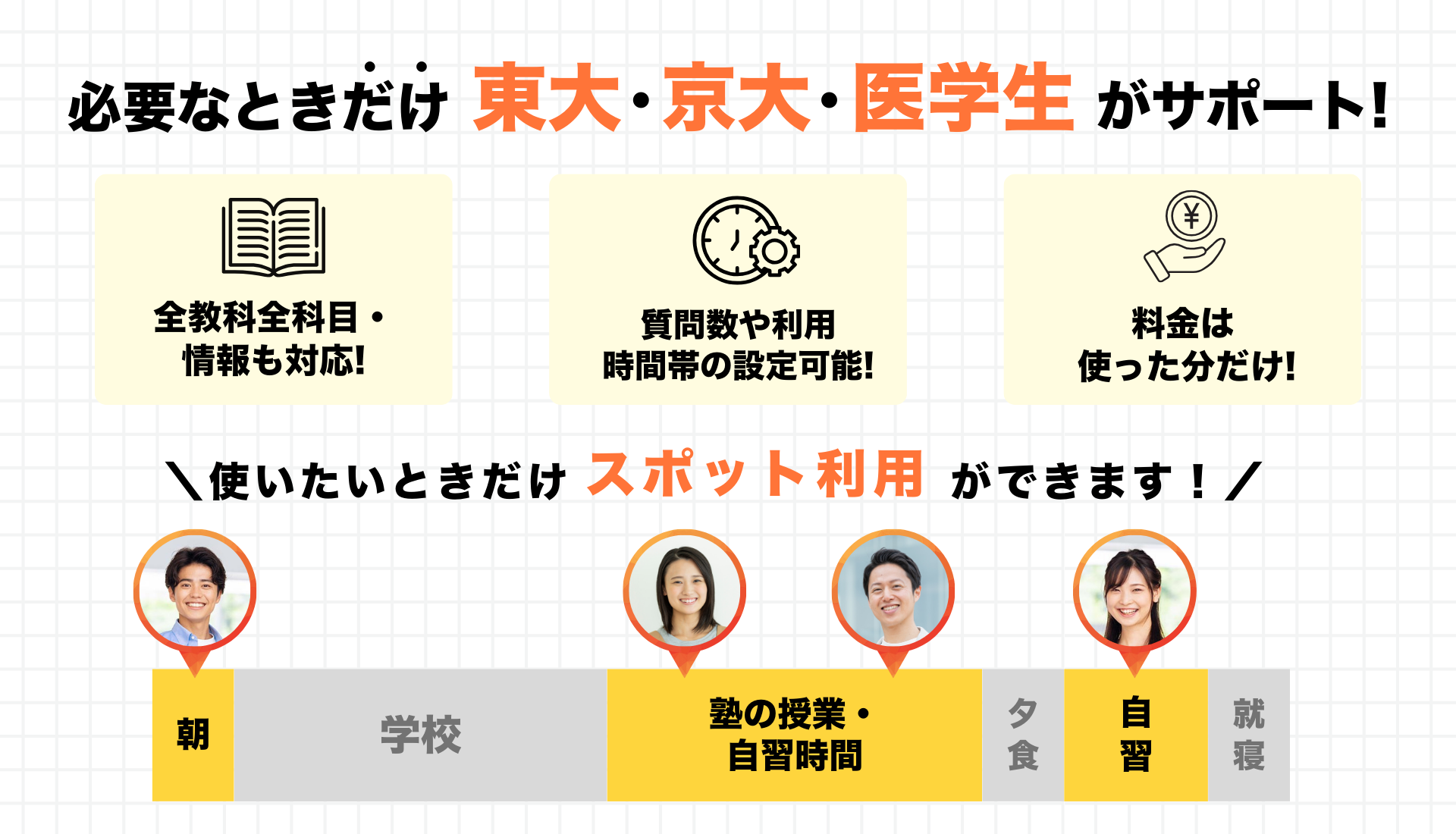 例えば、高3生が入試直前の1〜2週間だけ疑問を集中して解決するケースも多く見られます。模試の解き直しや苦手科目の総仕上げなど、短期間でも“ピンポイント”で弱点を潰し、学力向上につなげることができます。