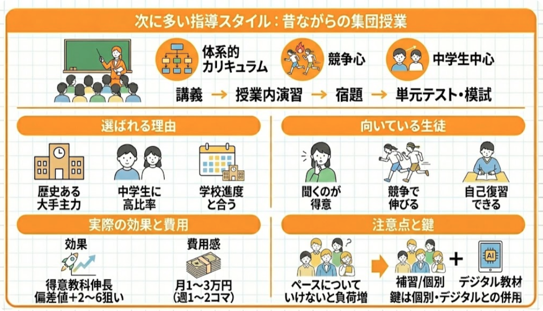- 歴史が長く、大手進学塾で主力スタイル