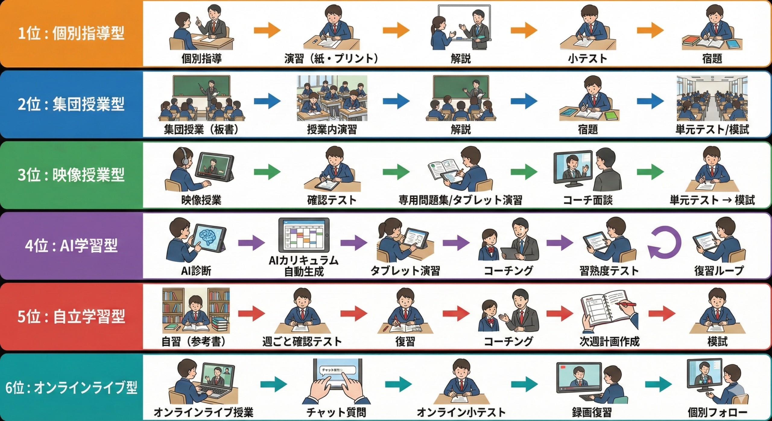 では、日本の学習塾で主流となっている指導スタイルをランキング形式でご紹介します!