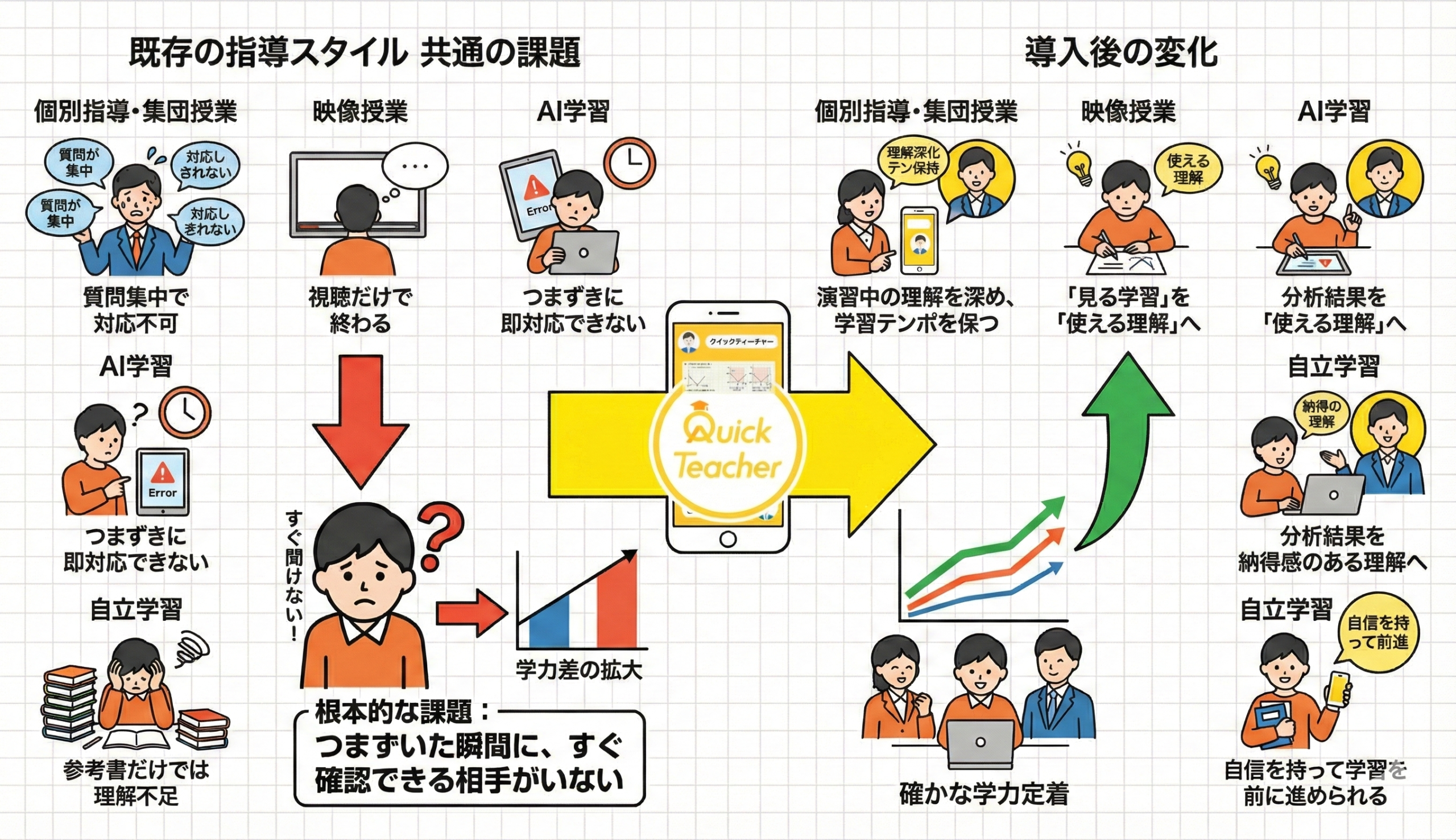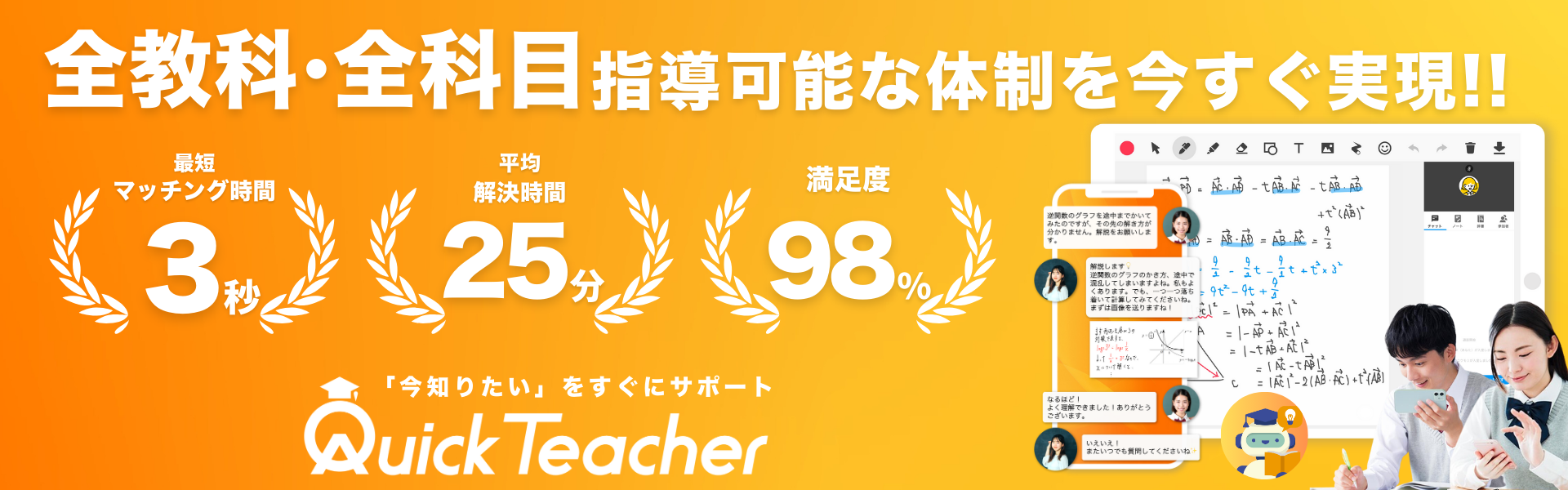 クイックティーチャーで「授業時間外の疑問」をリアルタイムに解消できるサポート体制 を!