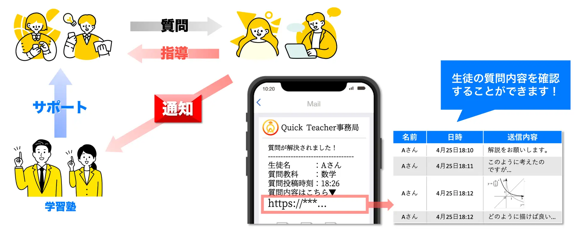 - クイックティーチャーを導入してから生徒や保護者とのコミュニケーションなどに時間を増やすことができました。