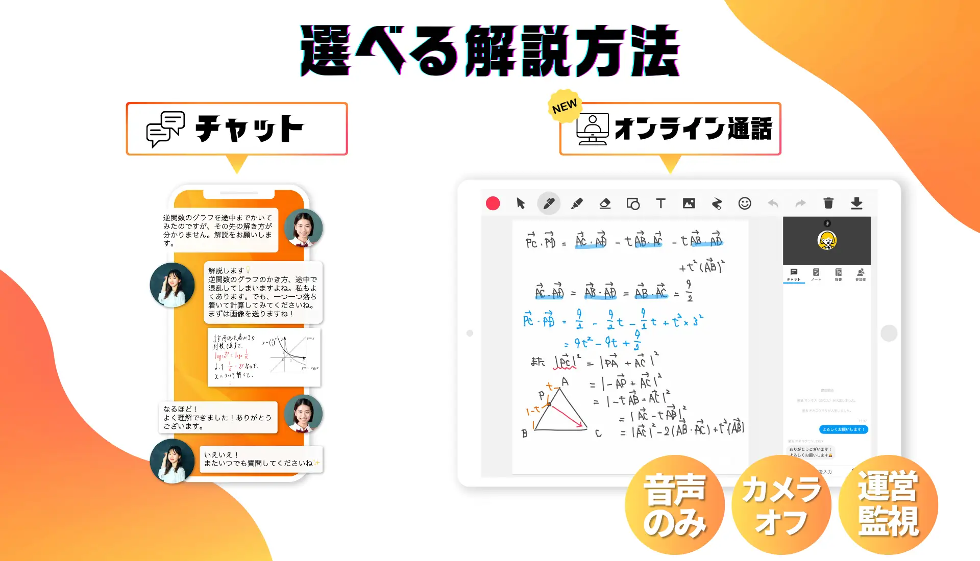 新機能③:「チャット」or「オンライン通話」から選べる解説方法